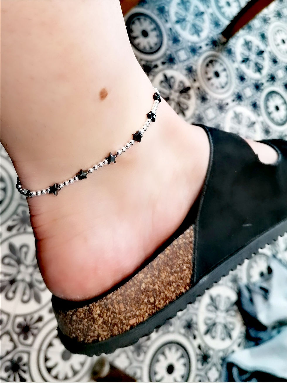 Sterling Silver with Hematite Star Anklet